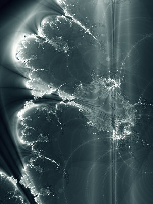 This is a classic or typical Lyapunov with its frozen, metalic, glassy, stone-like appearance. I'm always a little amazed at how life-like these fractals are. It's easy to see how simple mathematical formulas reiterated millions of times can mimic the appearance of natural things.