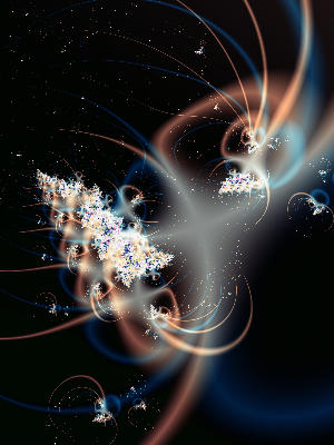 You never know what you'll find deep down in some of these fractals. These wispy, ghost-like shapes appear all over but here I found them floating in a dark "pool" and they suddenly appeared to be in space.